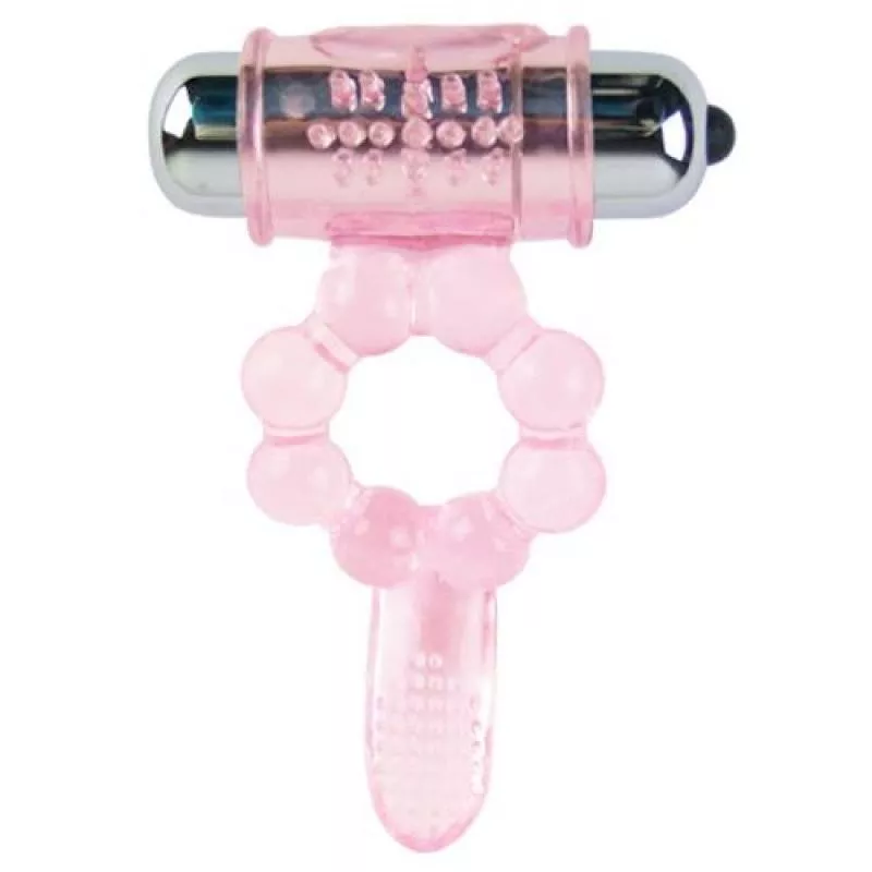 Ring mit doppelter Vibration und doppelter Stimulation. Einerseits Stimulation der Klitoris, mit einer Textur in der Umgebung. Und andererseits eine Liga zur Stimulation des Analpunktes.