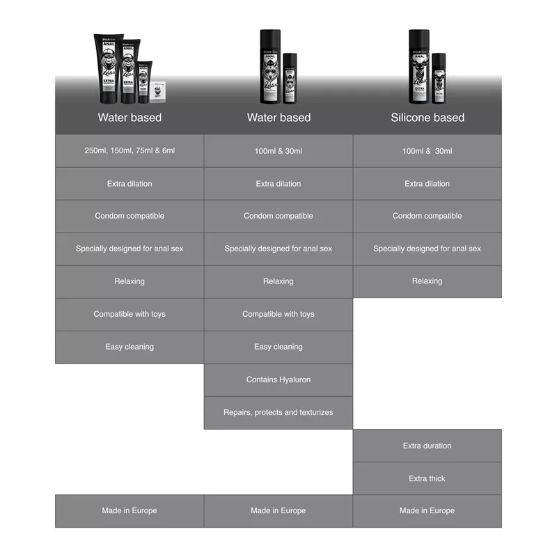 Wir fertigen basierend auf Erfahrung und wie wichtig es ist, neue Dinge auszuprobieren und den sexuellen Horizont zu erweitern. Das zeitlose Tabuthema Analsex ist mittlerweile salonfähig und wird von Millionen Menschen ganz normal praktiziert. Dieses leicht betäubende Gleitmittel wurde entwickelt, um Ihnen den Einstieg in den Analverkehr zu erleichtern.