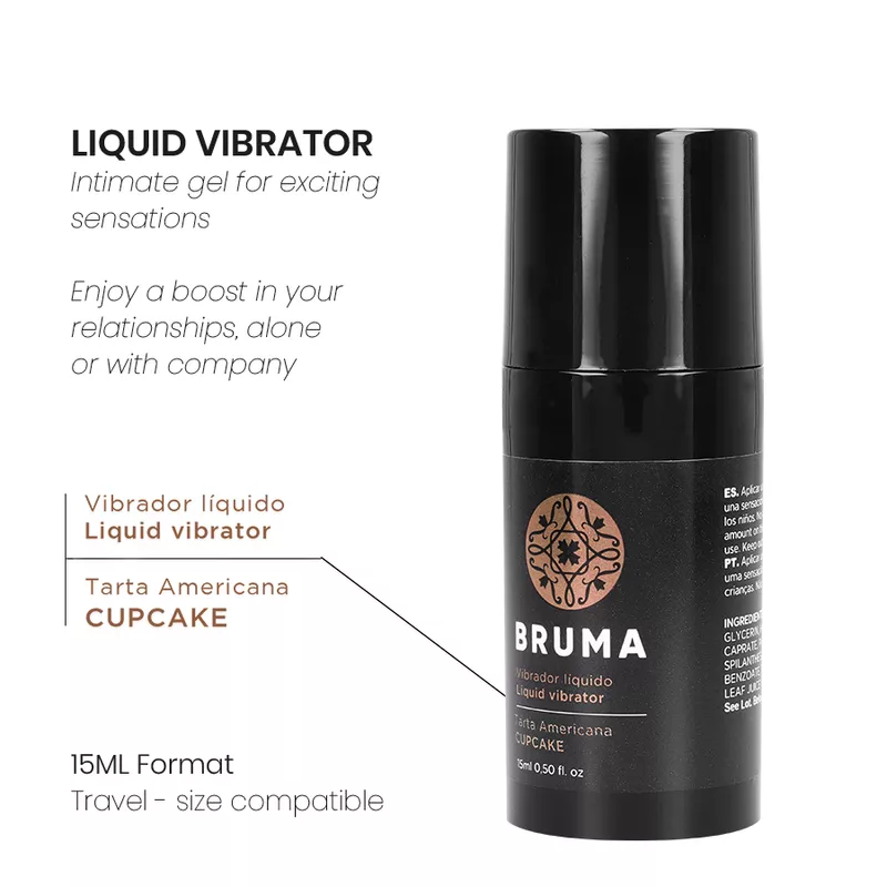 Der Flüssigvibrator mit Cupcake-Geschmack der Marke BRUMA ist ein Intimgel, das in Ihren intimsten Momenten aufregende und lustvolle Empfindungen vermittelt. Dieses innovative Produkt soll Ihren Beziehungen, ob allein oder in Gesellschaft, einen zusätzlichen Schub verleihen und jedes Erlebnis einzigartig und unvergesslich machen.