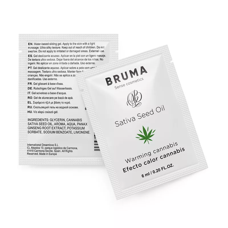 Wenn Sie auf der Suche nach einem neuen Maß an Leidenschaft und Verbundenheit bei Ihren intimen Erfahrungen sind, lädt Sie das BRUMA -Gleitgel mit Cannabisgeschmack und Wärmeeffekt und Samenöl dazu ein, eine Welt anregender und angenehmer Empfindungen zu entdecken.