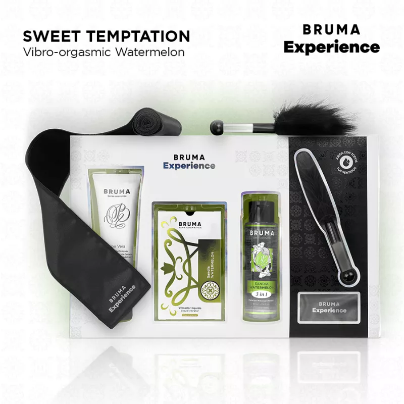 Eine tropische Fantasie, in der Saftigkeit auf Wagemut trifft. Dieses Paket vereint den süßen Geschmack von Wassermelone mit einem Flüssigvibrator, der jede Liebkosung in einen Lustrausch verwandelt. Natürliches Gleitmittel, Öl für hautnahe Erkundung, eine Feder zum Necken und eine Augenbinde für die Hingabe. Perfekt für warme Nächte und lustvolle Körper.