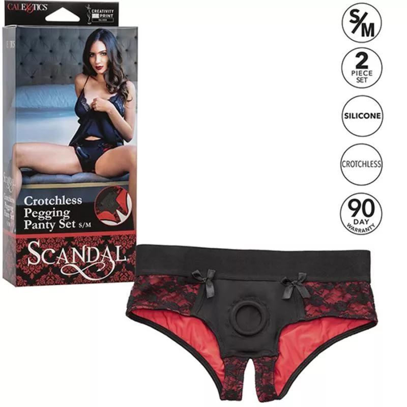 Das Scandal Crotchless Pegging Panty Set (S/M) erweckt Ihre wildesten Fantasien zum Leben. Mit seinem auffälligen schrittoffenen Design und einer 5-Zoll-Silikonsonde lädt Sie dieses Designer-Harness-Slip dazu ein, ungehemmtes Vergnügen zu entdecken. Die weiche Innenseite, die Spitzenaußenseite und der elastische Bund bieten Halt und Verführung in gleichem Maße. Ein verstärkter O-Ring hält Ihre Sonde sicher, während das offene Design maximale Zugänglichkeit und zusätzliche Spannung ermöglicht. Die mitgelieferte hypoallergene Silikonsonde ist für eine präzise Stimulation konturiert. Dieses aufreizende Höschenset ist pflegeleicht und maschinenwaschbar. Es passt für Taillengrößen von 26 bis 34 Zoll. Rollenspiele haben sich noch nie so stilvoll – oder so befriedigend – angefühlt.