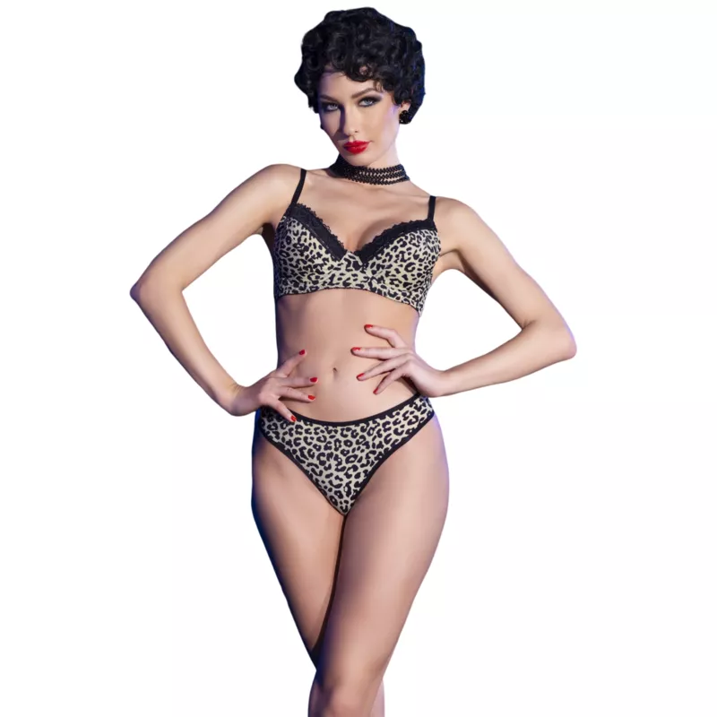 Lassen Sie Ihrer wilden Seite freien Lauf mit dem CR 4727 , einem gewagten und sexy Set, das für eine perfekte und individuelle Passform sorgt. Dieses Set im Animalprint umfasst einen BH und einen passenden Tanga, die beide vollständig verstellbar sind und sich Ihrer Figur auf bequeme und schmeichelhafte Weise anpassen.