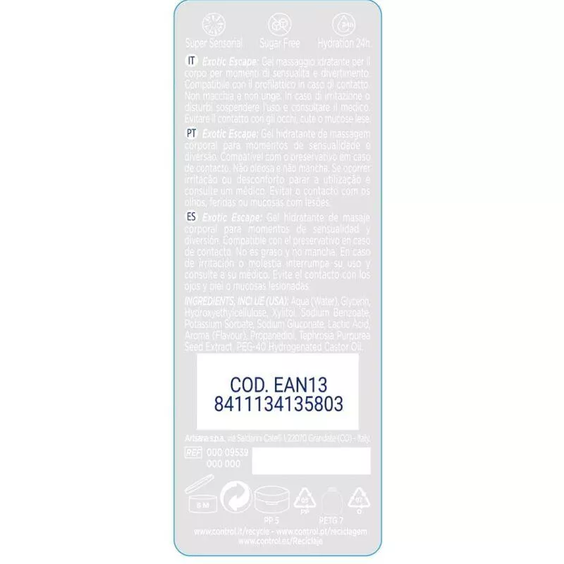 Gel 2-1 Anregend und sinnlich! Control-Massagegele eignen sich für jede Körperstelle, sei es durch eine Massage oder durch Stimulierung der erogenen Zonen vor dem Eindringen.