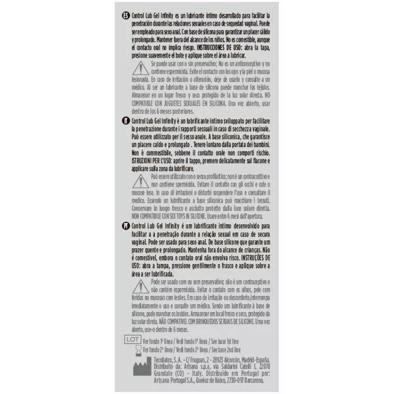 Control Lub Gel Infinity ist ein Intimgleitmittel, das entwickelt wurde, um das Eindringen während des Geschlechtsverkehrs bei vaginaler Trockenheit zu erleichtern. Kann für Analsex verwendet werden