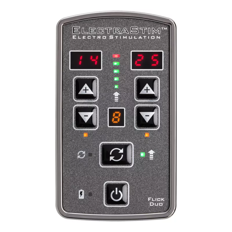 Flick Duo ist ideal für Paare und Power-Spieler, die mehr Spielzeuge gleichzeitig verwenden möchten. Es kann bis zu 4 unipolare oder 2 bipolare Elektroden gleichzeitig mit Strom versorgen. Jeder Kanal wird unabhängig gesteuert, sodass Sie mehr Kontrolle über die Empfindungen haben, die Sie empfinden, und die gemeinsame Stimulation mit Ihrem Partner verbessert wird.