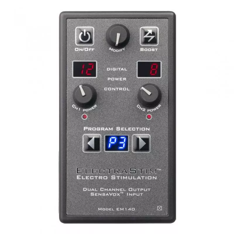 ElectraStim SensaVox ist einer unserer fortschrittlichsten und leistungsstärksten Stimulatoren, vollgepackt mit verlockenden Funktionen und verpackt in einem schlanken, hochwertigen Design. Wenn Sie eine leistungsstarke E-Stim-Powerbox suchen, die mehr Spielmöglichkeiten bietet, dann werden Sie diese Zweikanal-Elektro-Sexmaschine lieben.