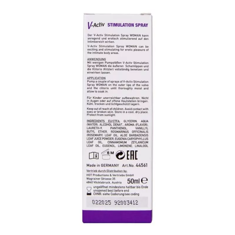 Der größte Vorteil dieses Sprays liegt in seiner schnellen und einfachen Anwendung, wodurch die Formel effizient und diskret wirken kann. Seine ausgewogene Zusammensetzung sorgt für ein belebendes Gefühl, das die Sinne weckt und die Empfindsamkeit steigert, wodurch das sexuelle Wohlbefinden auf ein neues Niveau der Ekstase gehoben wird.