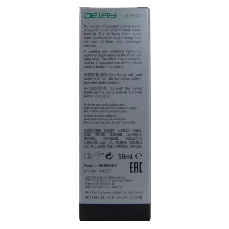 Entdecken Sie ein absolut herausragendes Verzögerungsspray für Männer. Die spezielle und hohe Konzentration an kühlenden und hemmenden Naturextrakten sorgt für ein völlig neues Gefühl und steigert gleichzeitig Ihre Leistungsfähigkeit.