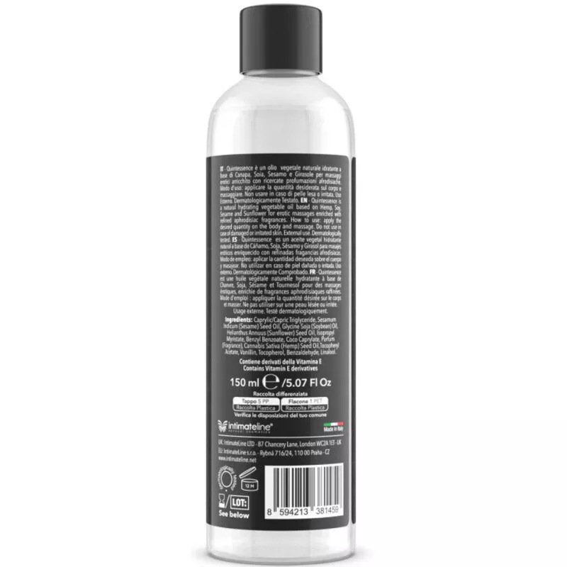 - Mit Hanfsamenöl. Beruhigende und feuchtigkeitsspendende Eigenschaften. Das Vorhandensein von Hanföl verleiht den Quintessence-Ölen ultra-feuchtigkeitsspendende und beruhigende Eigenschaften und garantiert maximalen Schutz für die Haut.