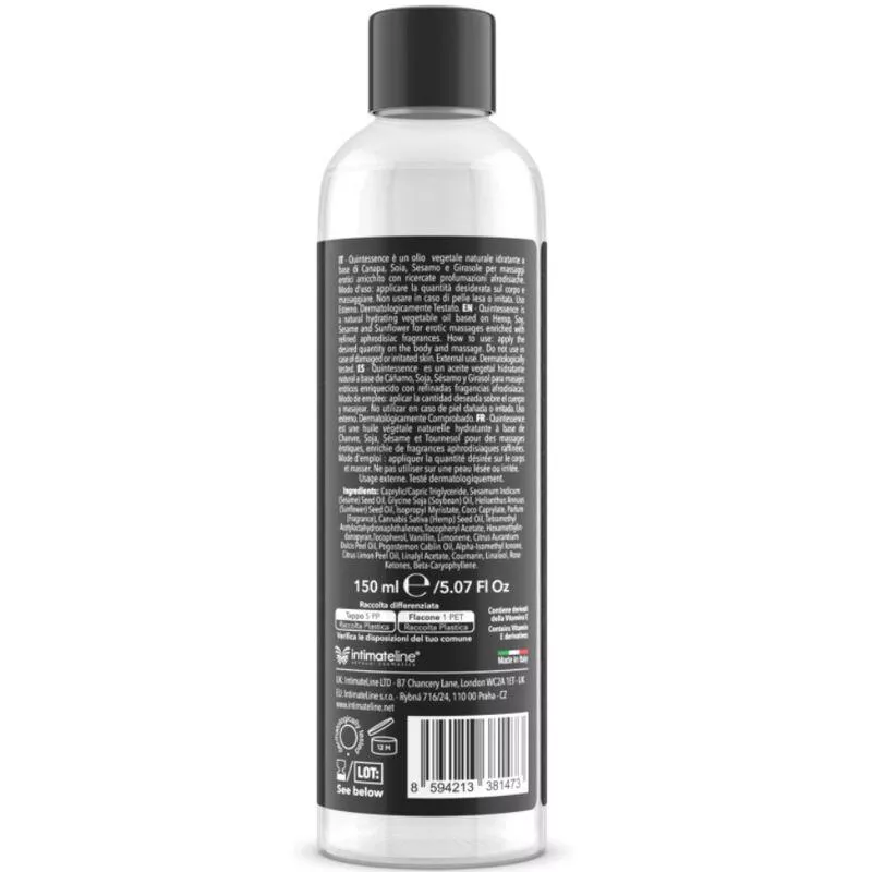 - Ideal für den Körper. Für weiche und seidige Haut. Dank seiner exklusiven Formel auf Basis hochwertiger Öle garantiert Quintessence Massage Oil maximale Verträglichkeit selbst bei empfindlichster Haut und macht sie nach jeder Anwendung weich und seidig. Darüber hinaus kann es als Öl nach dem Bad verwendet werden, um die Haut mit Feuchtigkeit zu versorgen und ihr einen angenehmen Duft zu verleihen.