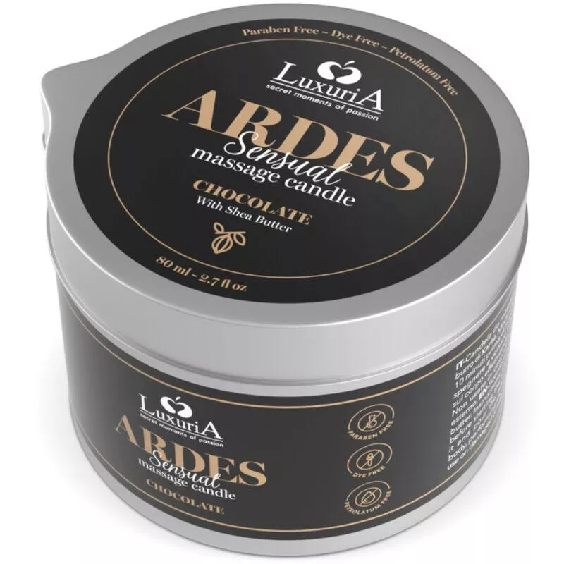 Luxuria Ardes Isabella Grape Massage Candle ist eine duftende Massagekerze aus Sheabutter, angereichert mit sinnlichen Aromen, um die intime Beziehung zu intensivieren und zu stimulieren. Die straffenden und geschmeidig machenden Eigenschaften der Sheabutter verleihen Ihrer Haut Linderung und Geschmeidigkeit. Das berauschende Aroma ihrer Düfte wird Sie in warme und sinnliche Momente voller Leidenschaft und Erregung einhüllen. Ardes wird eine lustvolle Atmosphäre entfachen, die Sie in eine sinnliche Dimension erotischer Lust entführt.