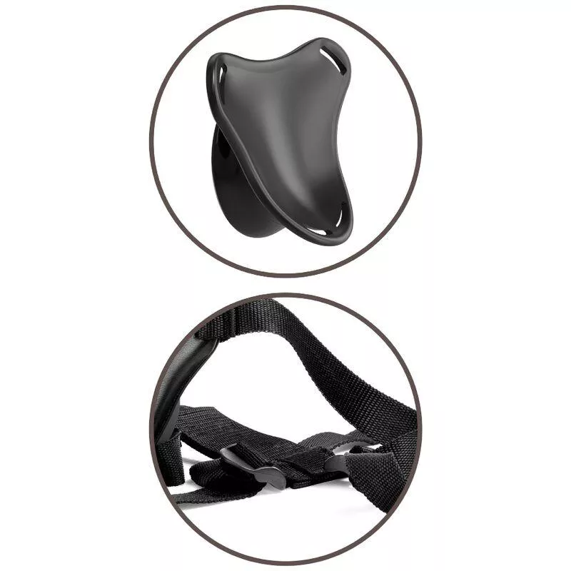 Die Nylongurte von Body Dock lassen sich leicht an die meisten Körpergrößen und -typen anpassen. Die Andockplatte hat einen Durchmesser von 8,6 cm und kann jeden Saugnapfdildo aufnehmen, dessen Durchmesser kleiner als diese Größe ist.