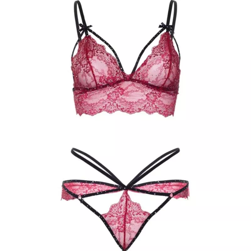 Entdecken Sie die Sinnlichkeit und den Charme des Leg Avenue 81623 Dessous-Sets – ein sorgfältig designtes Ensemble, das Ihre Weiblichkeit elegant und raffiniert unterstreicht. Das zweiteilige Set besteht aus einem wunderschön gearbeiteten Bralette und einem passenden String, beide aus zarter, gewellter Spitze, die einen romantischen und verführerischen Touch verleiht. Der tiefe, glamouröse Burgunderrotton macht dieses Set ideal für besondere Anlässe oder einfach, um sich selbst mit einem unwiderstehlichen Look zu verwöhnen.