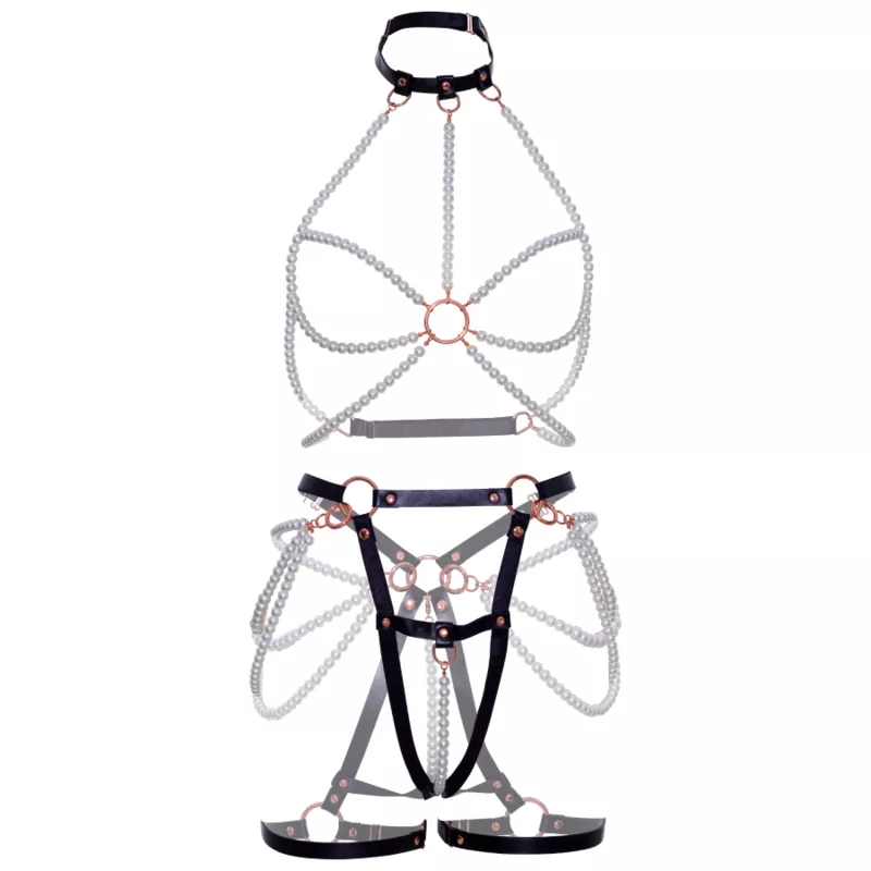 LEG AVENUE - HARNESS BRA & PEARL GARTER S