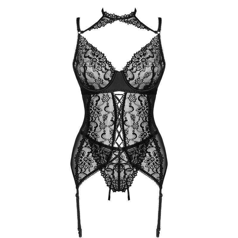 Das Giellandra-Korsett für die Sinne ist ein Set der luxuriösen polnischen Marke LivCo Corsetti Fashion, bestehend aus 2 Elementen – einem Korsett und einem Tanga. Die Unterwäsche ist in klassischem Schwarz gehalten. Das Korsett wird mit Haken befestigt, was eine Anpassung ermöglicht und Komfort garantiert. Es ist auch möglich, die Länge der Träger zu verstellen und Strümpfe anzubringen, was das Styling erheblich abwechslungsreicher macht. Dies ist ein perfektes Angebot für Frauen, die Wert auf Komfort legen, aber nicht auf ein sinnliches Aussehen verzichten möchten. Die Unterwäsche besteht aus 90 % Polyamid und 10 % Elasthan. Durch diese Materialkombination ist das Outfit sehr flexibel und schränkt die Bewegungsfreiheit nicht ein. Das Set enthält dekorative Einsätze aus strapazierfähiger Spitze, die weibliche Formen an allen wichtigen Stellen betonen. Der Schnitt und die Bindung am Bauch machen das Korsett raffiniert und lassen gleichzeitig Raum für Fantasie. Ein ungewöhnliches Element ist ein Halsband, das die Aufmerksamkeit auf Hals und Schlüsselbeine lenkt. Dieses sexy Korsett wird sicherlich viele romantische Abende aufpeppen.