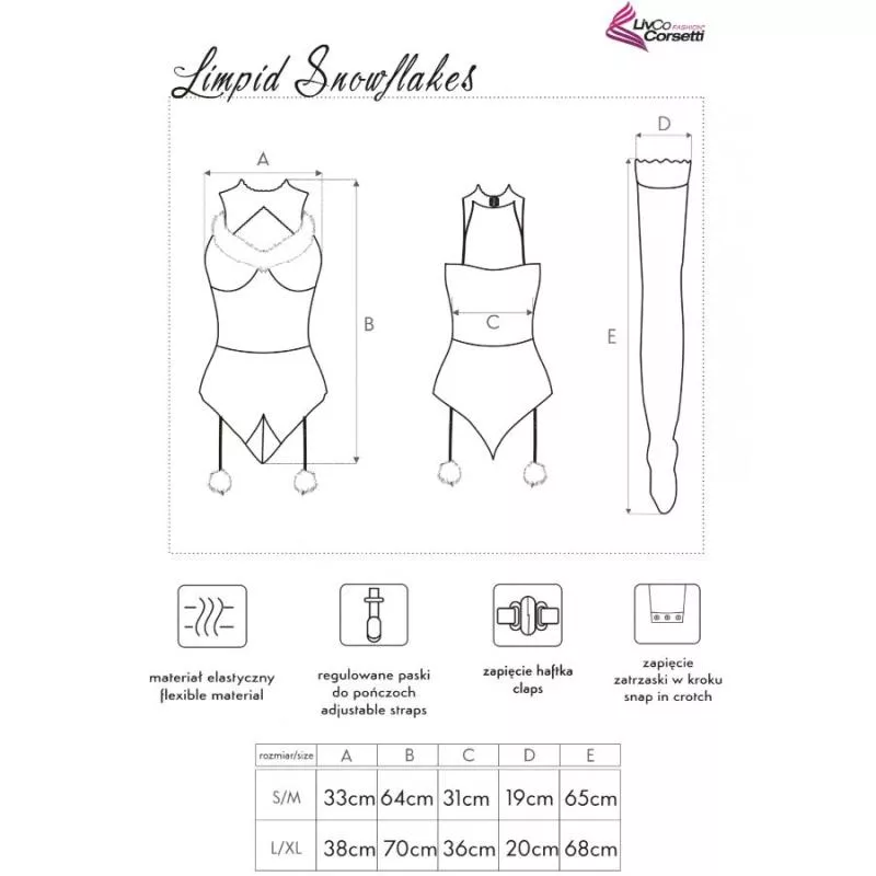 Dieses Set aus einem Materialmix aus 90 % Polyamid und 10 % Elastan bietet eine weiche, seidige und hochelastische Textur, die sich sanft an den Körper anschmiegt. Die Materialzusammensetzung sorgt für eine bequeme und körpernahe Passform, optimale Bewegungsfreiheit und ein angenehmes Tragegefühl. Erhältlich in den Größen S/M und L/XL, passt es sich verschiedenen Figurtypen fest und dennoch flexibel an. Der Body mit seinem sinnlichen und festlichen Design betont die Figur auf attraktive und elegante Weise. Die passenden Strümpfe mit ihrem komfortablen und elastischen Finish runden den Look ab und verleihen ihm eine zusätzliche Portion weihnachtlicher Eleganz.