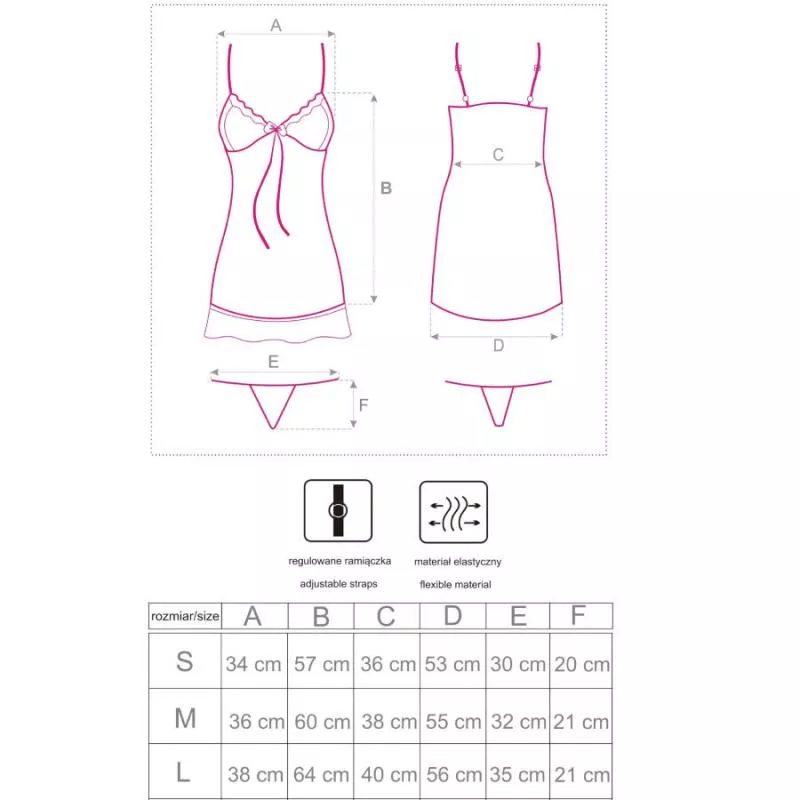 Jede Frau sollte sowohl Alltagskleidung als auch Kleidung für besondere Anlässe im Kleiderschrank haben. Dasselbe gilt für Unterwäsche: Es ist wichtig, etwas Bequemes und Elegantes zu haben. Das Set Hyeona ist ideal für besondere Anlässe: Ein zartes Tüllhemdchen kombiniert mit einem String-Höschen ergibt ein perfektes Schlafzimmer-Set. Alles in einem Puderrosa-Ton, zart und elegant einerseits und extrem sexy andererseits. Das Hemdchen ist aus einem hautfreundlichen Material gefertigt. Der obere Teil ist mit Spitze mit Blumenmotiv versehen. Dieses Modell legt die Brust wunderschön frei und betont sie, nicht nur dank der Spitze, sondern auch aufgrund des tiefen Ausschnitts. Abgerundet wird das Set durch einen zartrosa String mit dünnen Riemchen an den Seiten.