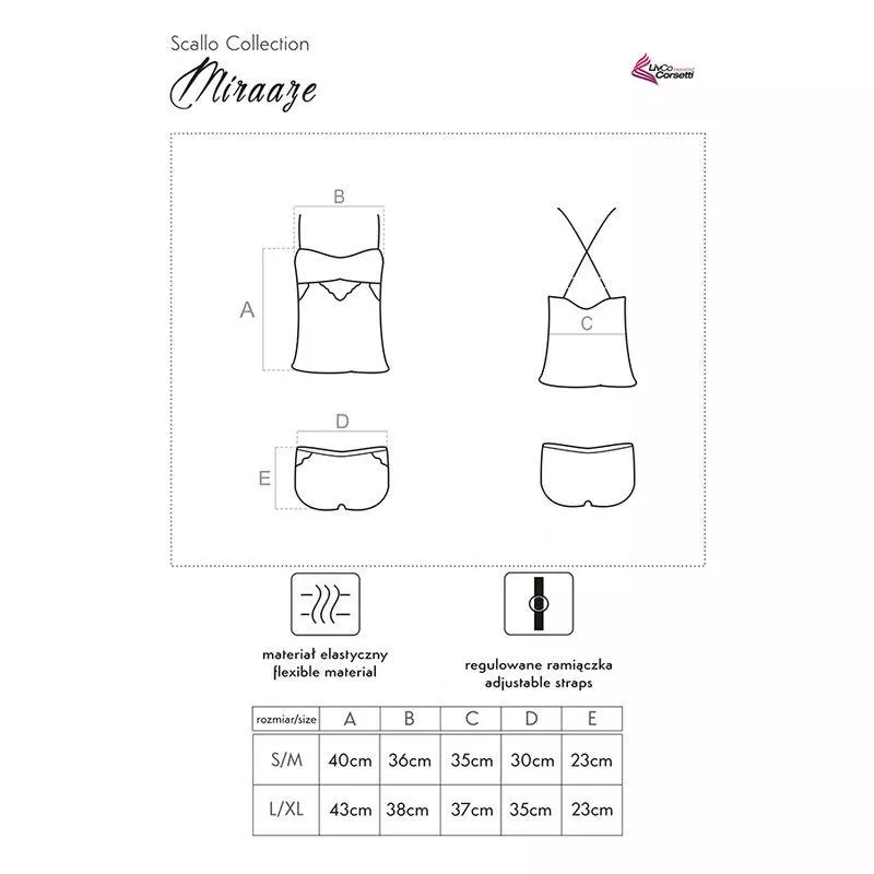 Dies ist ein bequemes und feminines Set von LivCo Corsetti, bestehend aus einem T-Shirt und Shorts. Perfekt für warme Tage, aber auch zum Schlafen oder als Ergänzung für Momente voller Leidenschaft. Unterwäsche, die speziell auf die Bedürfnisse jeder Frau zugeschnitten ist. Dieses atemberaubende Dessous-Set vereint Subtilität und Funktionalität mit Sexappeal. Auffällige Unterwäsche für mutige, selbstbewusste Frauen, die keine Angst davor haben, ihre Weiblichkeit zu betonen. Das faszinierende Design des Sets, das die weiblichen Reize betont, wird jeder Frau darin ein äußerst sexy und mutiges Gefühl geben. Ein Dessous-Set kann das perfekte Geschenk sein, das jeder Frau gefallen wird, es wird elegant und sexy und gleichzeitig nicht zu provokant sein. Das Set besteht aus 2 Teilen: T-Shirt + Shorts