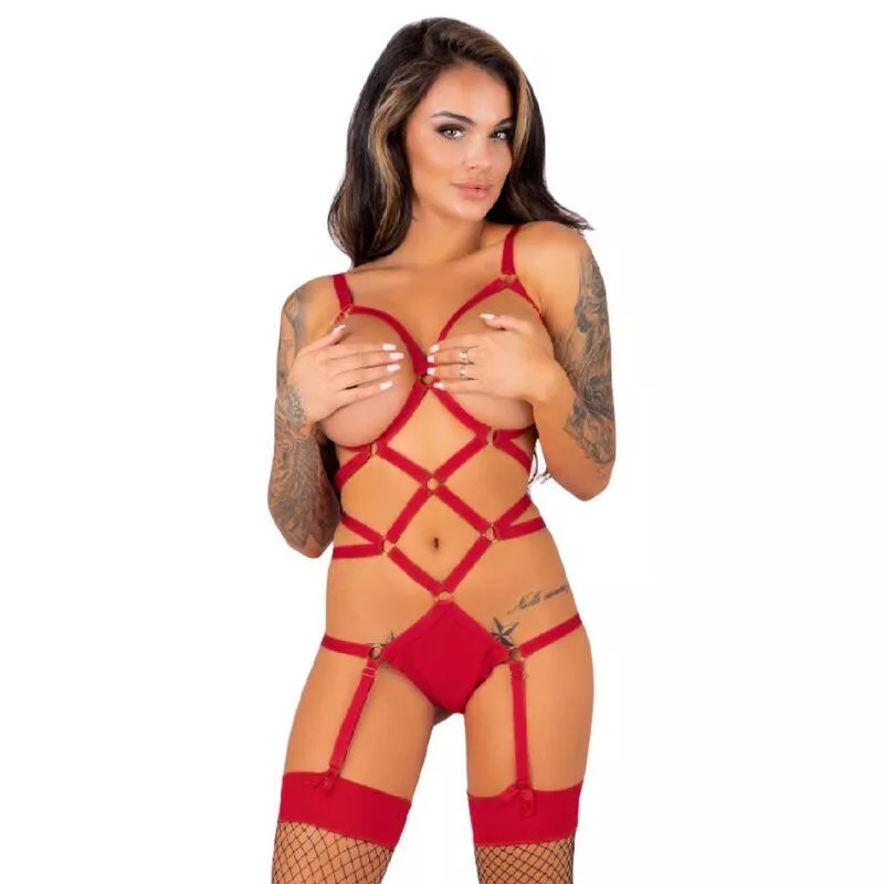 Ein einzigartiges und sinnliches Set für energische und mutige Frauen. Faszinierend, überraschend, geheimnisvoll, genau das, was ein erotisches Dessous-Set sein sollte. Manchmal muss man etwas verdecken, manchmal muss man mehr zeigen und manchmal ... originell und ein bisschen verrückt sein. Warum? Weil im Schlafzimmer kein Platz für Langeweile ist! Das Thiara Red -Set ist eine Kombination dieses Wahnsinns mit Stil und Eleganz. Es überrascht sicherlich mit seinem originellen Design und der Tatsache, dass es von hinten völlig anders aussieht als von vorne.