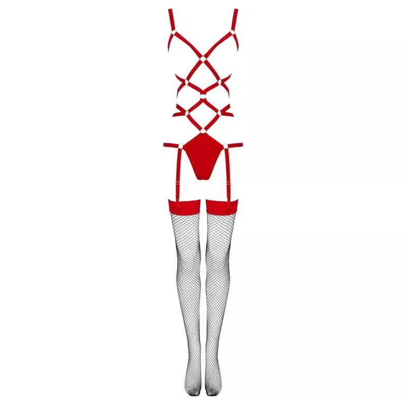 Ein einzigartiges und sinnliches Set für energische und mutige Frauen. Faszinierend, überraschend, geheimnisvoll, genau das, was ein erotisches Dessous-Set sein sollte. Manchmal muss man etwas verdecken, manchmal muss man mehr zeigen und manchmal ... originell und ein bisschen verrückt sein. Warum? Weil im Schlafzimmer kein Platz für Langeweile ist! Das Thiara Red -Set ist eine Kombination dieses Wahnsinns mit Stil und Eleganz. Es überrascht sicherlich mit seinem originellen Design und der Tatsache, dass es von hinten völlig anders aussieht als von vorne.