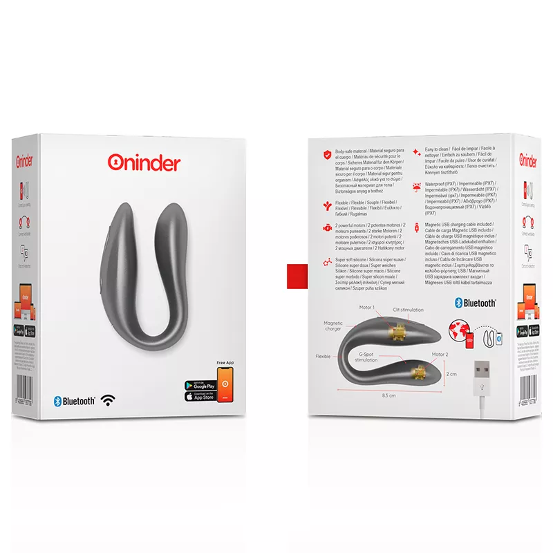 Mit diesem Vibrator können Sie nicht nur Intensitäts- und Vibrationskombinationen kombinieren, sondern auch eine innovative Steuerung auf Basis einer Anwendung durchführen. Laden Sie einfach die kostenlose ONINDER™ -Anwendung auf Ihrem Android- oder iOS-Gerät herunter und verbinden Sie sie mit Ihrem Smartphone oder Tablet.