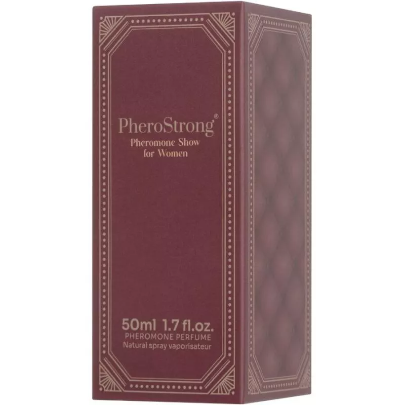 PheroStrong Pheromonshow für Frauen PheroStrong Show für Frauen soll faszinieren und verführen. Es eröffnet mit einer reichhaltigen Mischung aus Likör, Kirsche und Mandeln, die sofort die Aufmerksamkeit auf sich zieht. Die Herznote bildet eine romantische und sinnliche Mischung aus türkischer Rose, Jasmin, Pflaume und saftiger Kirsche. Die Basisnote hinterlässt mit Perubalsam, Tonkabohne, Sandelholz, Patschuli, Vanille und Gewürzen einen tiefen und anhaltenden Eindruck. Verstärkt durch PheroStrong®-Pheromone umgibt Sie dieser Duft mit einer kraftvollen Aura von Weiblichkeit, Sinnlichkeit und unverhohlenem Glamour.