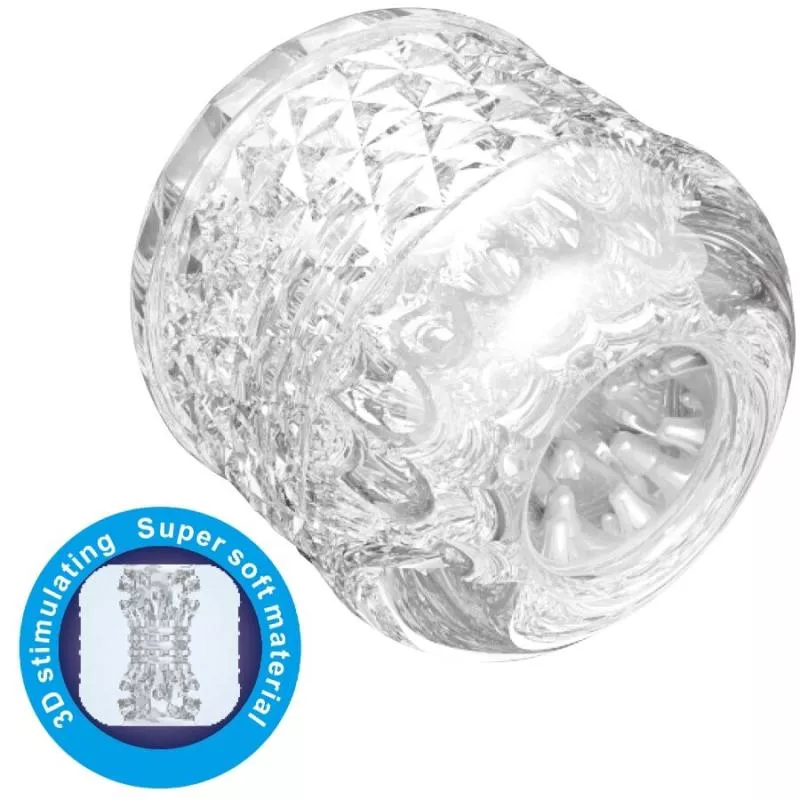 Eleganter manueller Stroker in transparenter Farbe von unvergleichlicher Qualität, der eine äußerst unwiderstehliche Stimulation bietet.