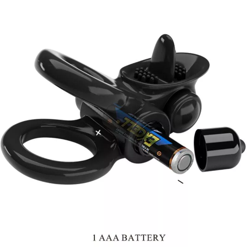 PRETTY LOVE - PASSIONATE RING DOPPELTER VIBRATIONSRING + KLITORIS-STIMULATOR SCHWARZ