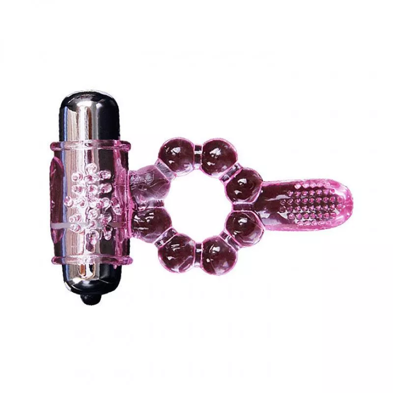 Ring mit doppelter Vibration und doppelter Stimulation. Einerseits Stimulation der Klitoris, mit einer Textur in der Umgebung. Und andererseits eine Liga zur Stimulation des Analpunktes.