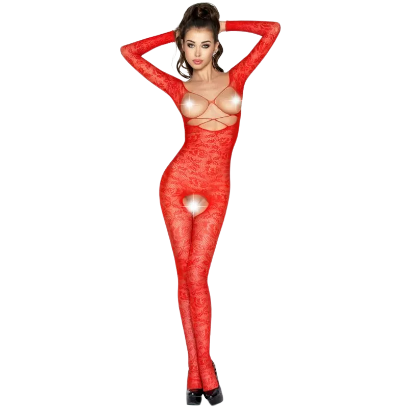 Fabelhafter Netz-Body mit spektakulär sexy Design, Öffnung im Schritt und wunderschöner und sinnlicher Stickerei, hergestellt von der renommierten Sexy-Dessous-Marke Passion.