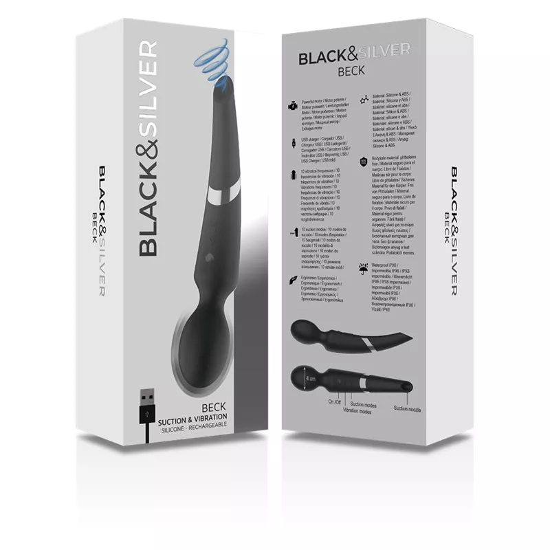 BLACK&SILVER™ Beck ist der unverzichtbare Saugstab-Massagestab für Sie oder Ihren Partner. Lösen Sie Verspannungen, vergessen Sie Stress und entspannen Sie Ihre Muskeln für ein einzigartiges Orgasmus-Erlebnis. Mit seinem raffinierten Design bietet dieser leistungsstarke Massagestab zehn verschiedene Massagemuster, die Ihre Muskeln entspannen und Stress abbauen. Jetzt mit stabilerem Griff und noch längerer Ladezeit für stundenlanges Vergnügen. Entspannen Sie wie nie zuvor.
