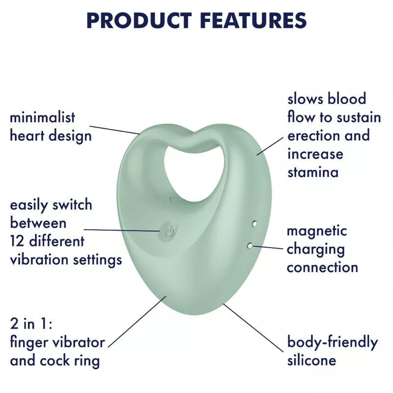 Mit seinem verspielten und minimalistischen Design in Herzform, seinem ultraweichen biokompatiblen Silikon und seiner vielseitigen Verwendung ist der Satisfyer Perfect Pair 3 ein Sexspielzeug, das sich völlig diskret Ihren Wünschen anpasst; NEIN.Als Penisring verwendet, stimuliert er die Hoden und den Penis.Als vibrierender Finger stimuliert er alle erogenen Zonen.
