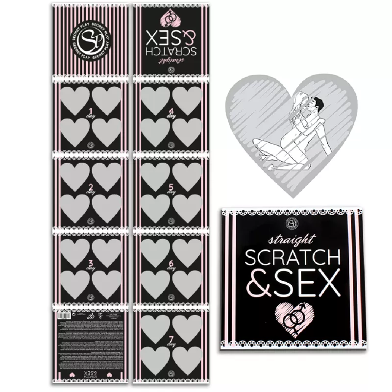 Sie können den einwöchigen Stapel beenden und dann noch einmal von Anfang an rubbeln, um die verbleibenden Positionen zu entdecken, sodass Sie vier Wochen lang spielen können. Scratch & Sex gibt es in drei verschiedenen Versionen, eine für jede Art von sexueller Orientierung. In diesem Fall ist der Kratzer GERADE