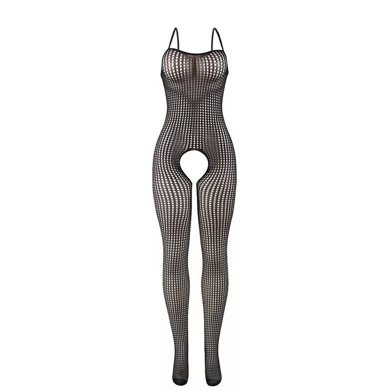 • Stil: Schwarzer elastischer Netz-Bodystocking mit schrittoffenem Design (offener Schritt).