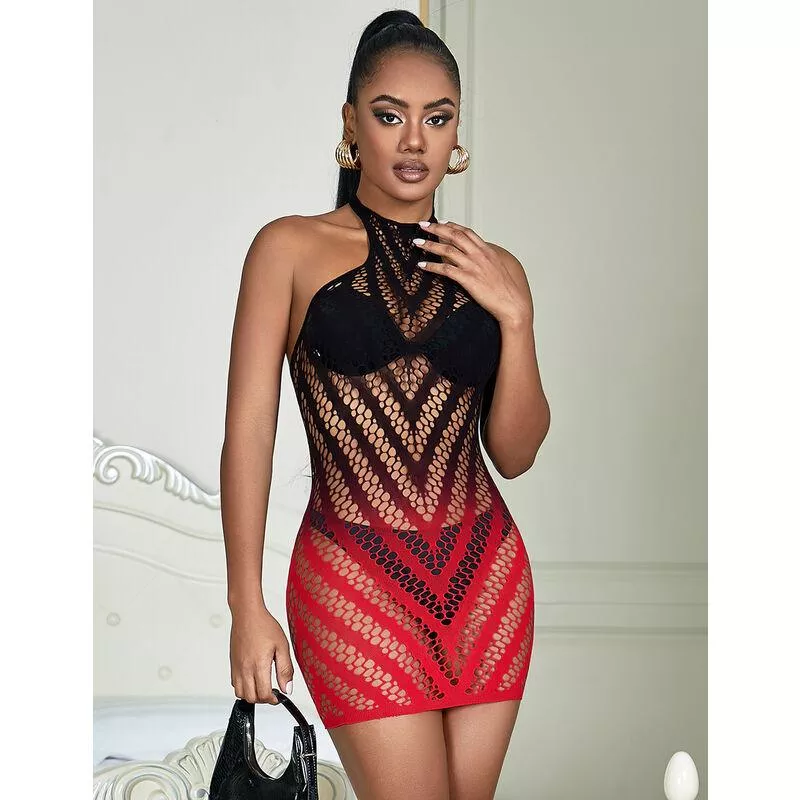 SUBBLIME 952242 - Netzkleid Rot Schwarz Degrad - One Size