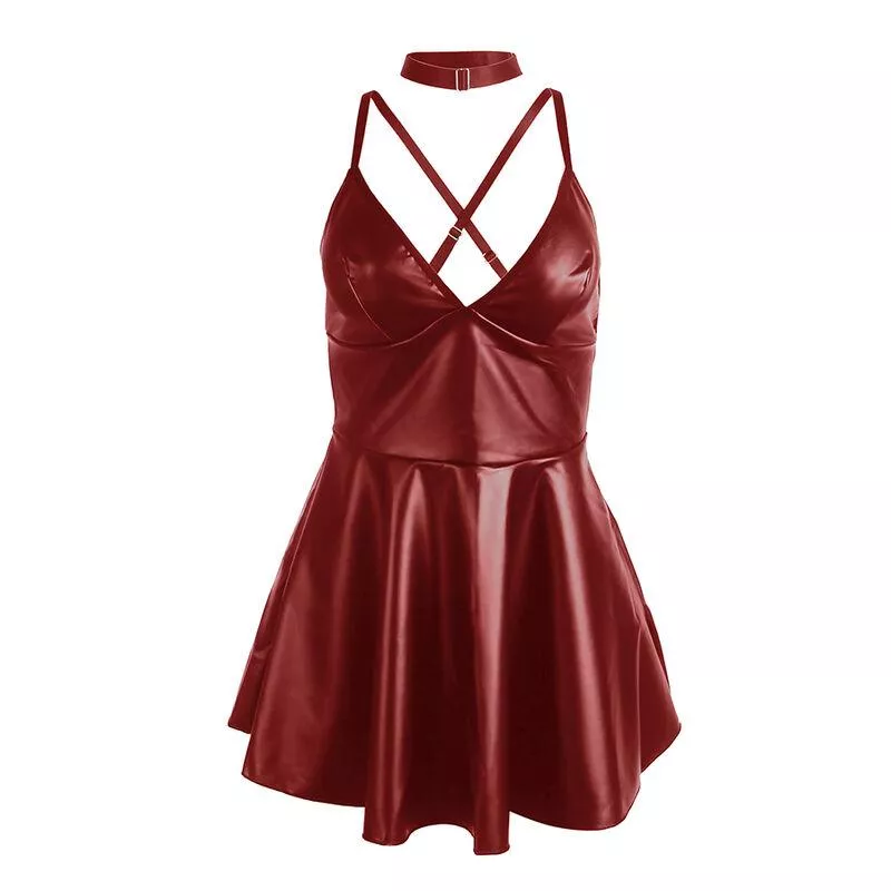 Dieses Nachthemd ist aus hochwertigen Materialien gefertigt und besteht aus 95 % Polyester und 5 % Elastan/Spandex, was eine weiche, elastische Textur und eine perfekte Passform gewährleistet. Das burgunderfarbene Finish aus Kunstleder (PU) verleiht einen luxuriösen Touch, während das Design mit verstellbaren Trägern Komfort gewährleistet und die Figur schmeichelt. Die elegante und raffinierte burgunderfarbene Farbe verleiht diesem Kleidungsstück einen Hauch von Geheimnis und Sinnlichkeit und macht es zur perfekten Wahl für romantische Anlässe oder um mit einem verführerischen Look zu überraschen.