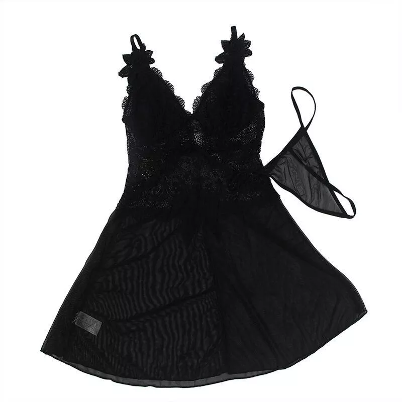 SUBBLIME - Babydoll Tüll Spitze Blumen Schwarz