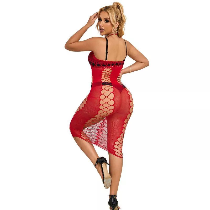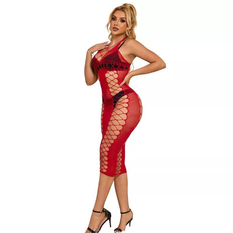 SUBBLIME Langes Rotes Netz-Kleid - Erotik One Size