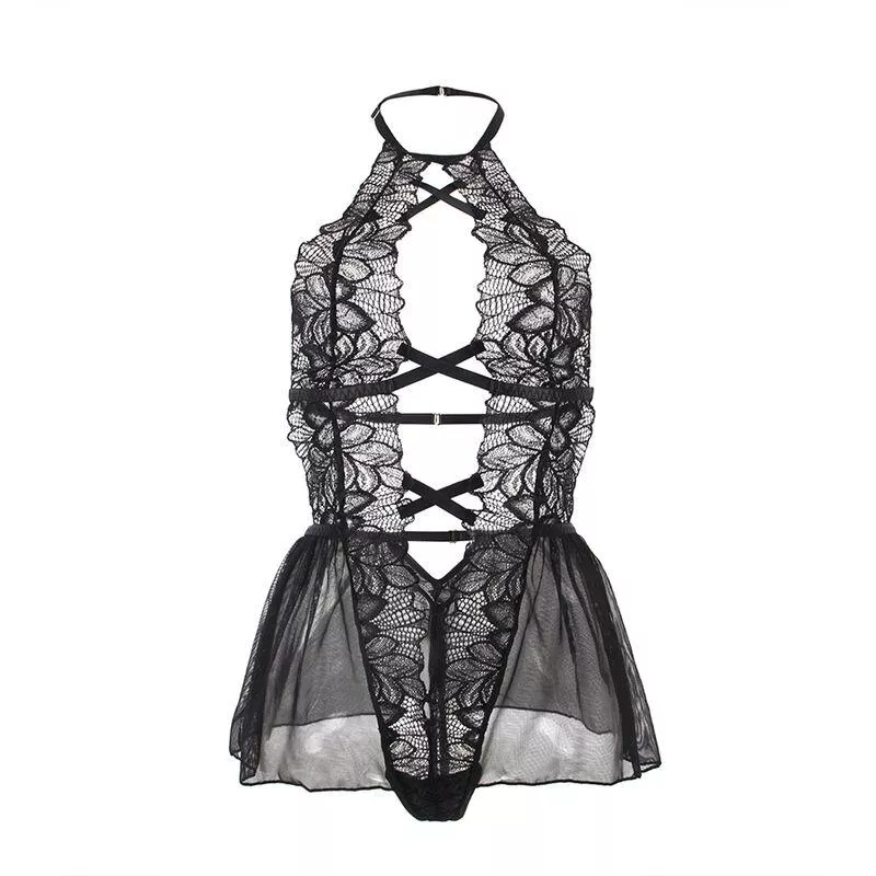 SUBBLIME - Teddy Halterneck Nackiger Rücken Spitze Schwarz
