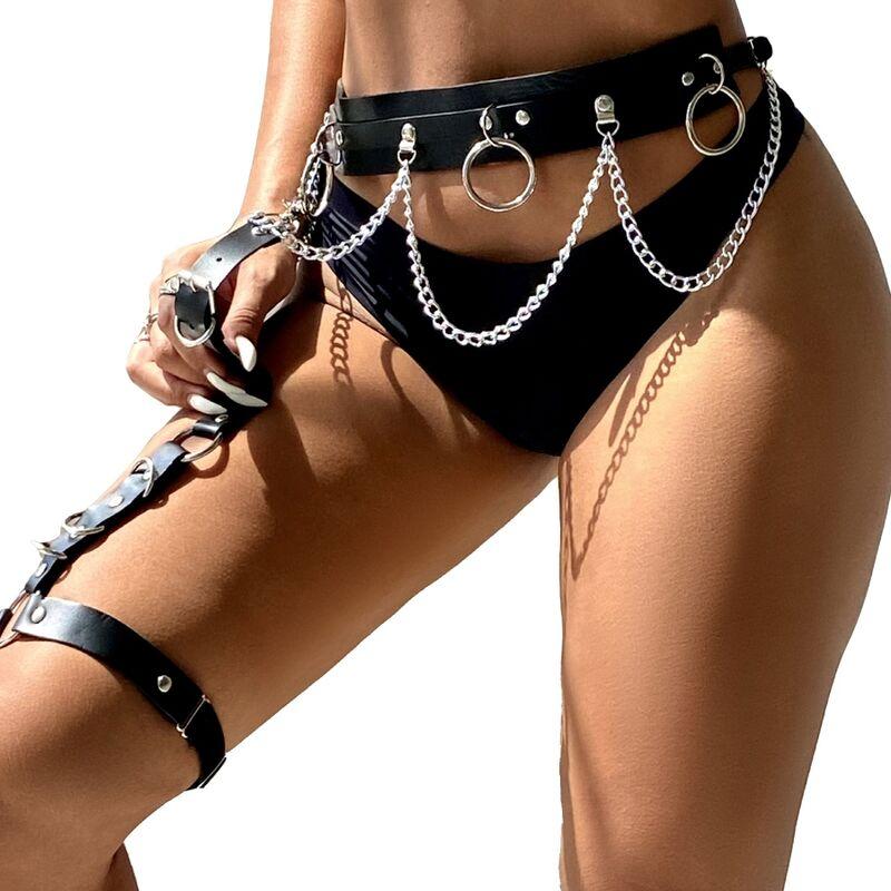 Sublime - Strumpfbandgürtel mit Ringen und Kette - One Size